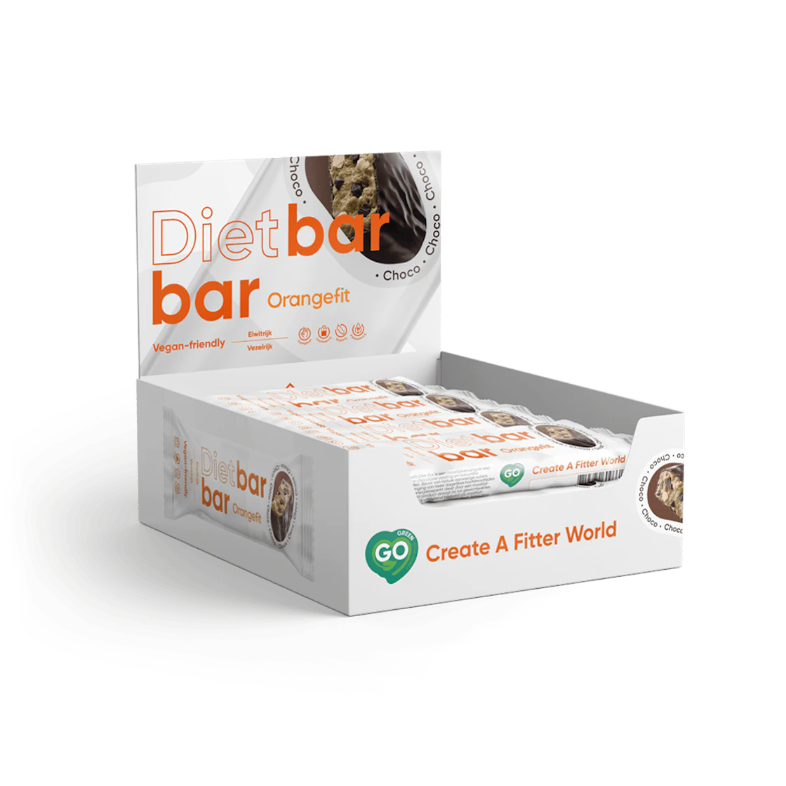 Diet Bar en je healthy mindset vormen een echt power couple. Het is de perfecte reep voor iedereen die met z’n gewicht bezig is. Een uitblinker in vezels en eiwitten, goed voor 30% van je dagelijkse vitaminen en mineralen-behoefte. Je leest het, deze dieetreep vinkt alle vakjes aan. Neem ‘s ochtends een van de Orangefit maaltijdshakes en in de middag een dieetreep. Of wissel af, de ene dag een shake, de andere een Diet Bar.