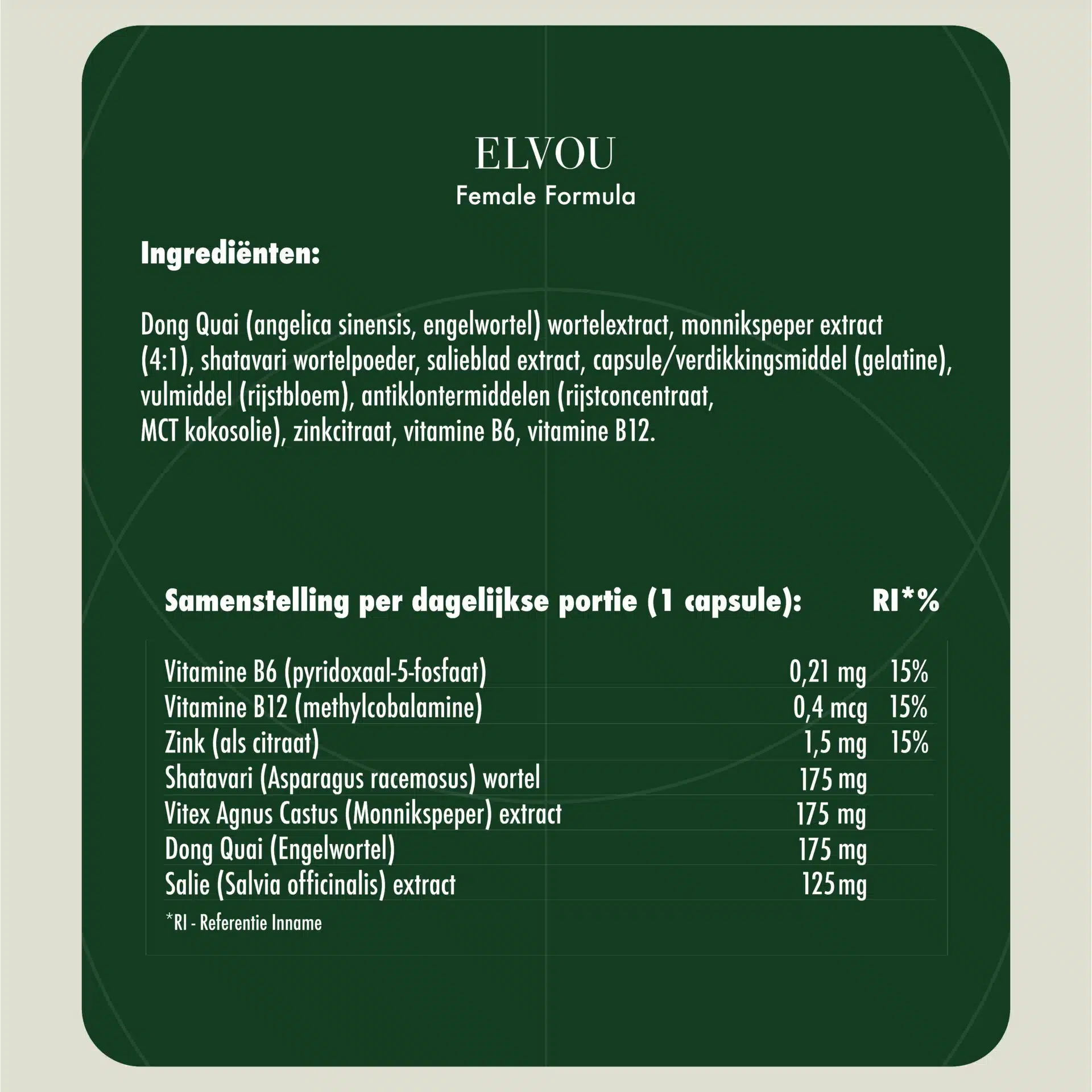 De Female Formula is speciaal ontwikkeld als brede ondersteuning voor vrouwen. Deze formule bevat Vitex Agnus Castus, die een normale menstruatie ondersteunt*. Vitamine B6 draagt bij tot de regulering van de hormonale activiteit. Voor vrouwen in de overgang is salie ook een waardevolle toevoeging aan de Female Formula*. Tot slot helpt Dong Quai om gewrichten soepel te houden*.
